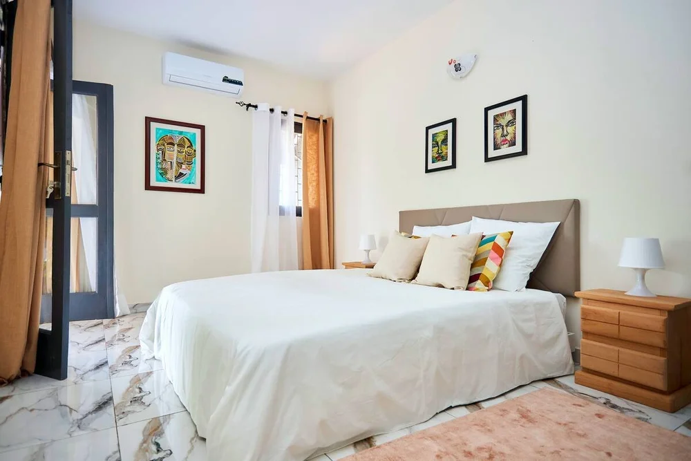 Superbe villa dans le quartier de Cocody Ambassades, à 3 mn du Sofitel Hôtel Ivoire, 9 mn du plateau (quartier des affaires), 5 mn du pont HKB (vers l’aéroport, proche de toutes commodités (restaurants, lieux de sorties, supermarchés …), élégante, spacieuse, conviviale, “family friendly” avec jardin, terrasse, parking, sécurité et femme de ménage au besoin, bienvenu.e à Abidjan !